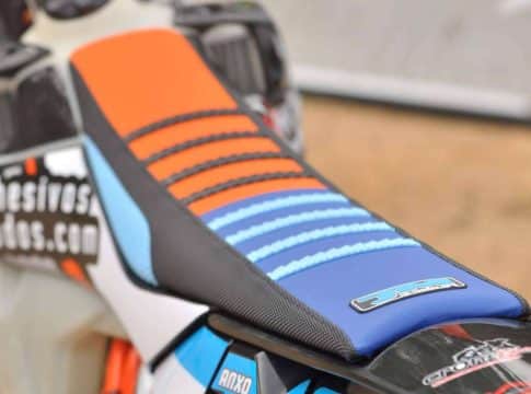 En particular, JM Fundas desarrolla estos importantes elementos para motos off road de KTM para la estabilidad del conductor adjudicando un mayor agarre. La elaboración de las fundas se hace con tejidos antideslizantes que permiten mayor agarre al asiento, además de humps de goma o vulcanizados que impiden el desplazamiento del piloto.
