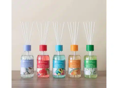 Estos productos están integrados por varitas de fibra que evaporan distintos aromas al estar en contacto con el aire. A su vez, la intensidad se controla introduciendo más o menos varitas en el ambientador.