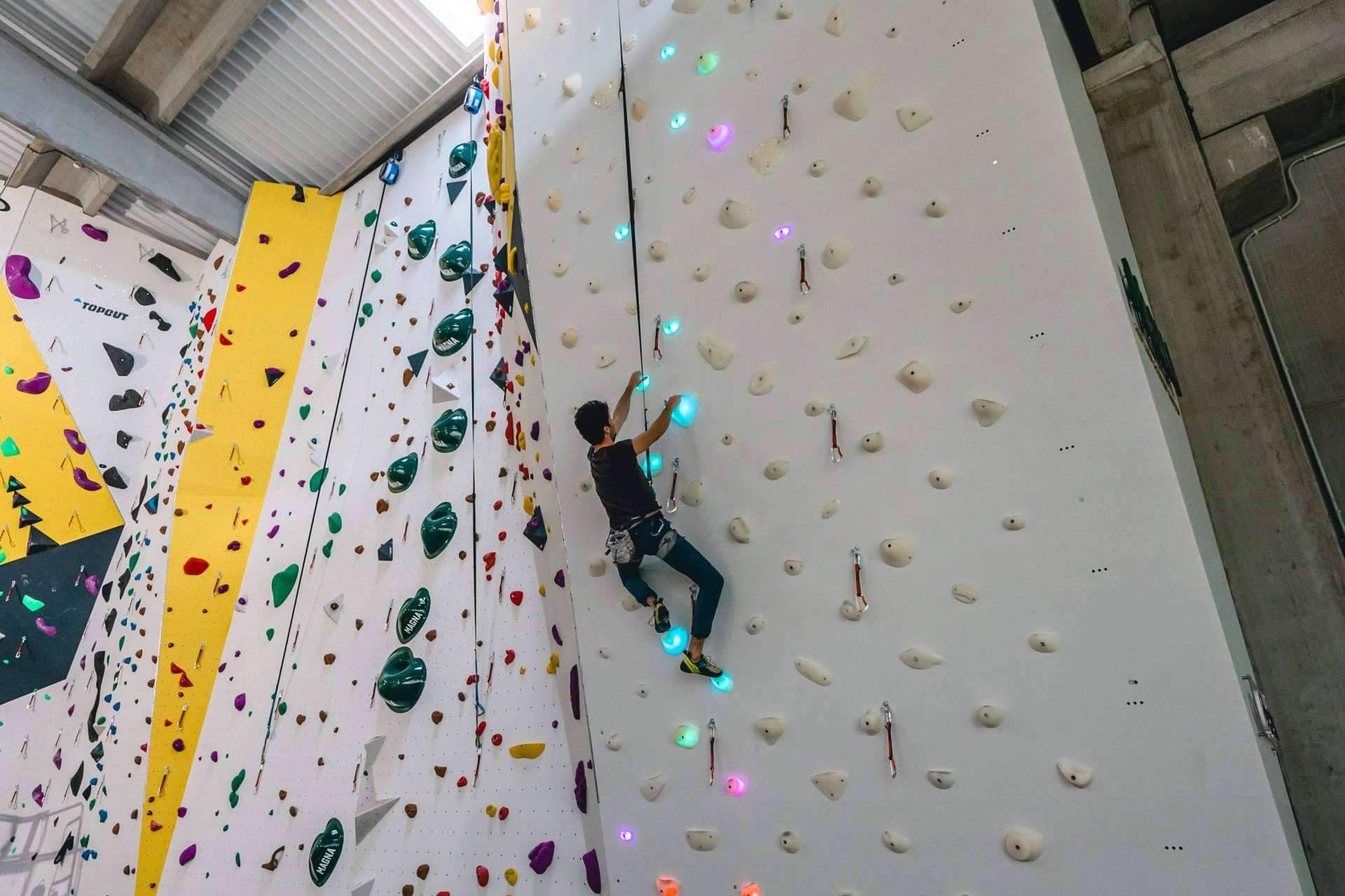 Una gran manera de sumarle diversión a esta actividad es utilizando sistemas interactivos, iluminando las presas del rocódromo para mostrar diferentes vías y practicar juegos o retos solo o en equipo. Para ello, una excelente opción son los sistemas de Shiny Wall, que transforman el rocódromo en una experiencia única y brillante.
