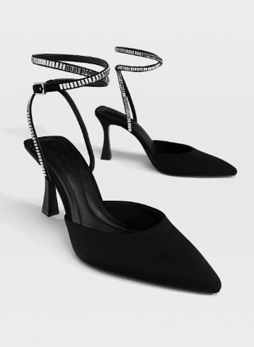 Estos elegantes zapatos de tacón son el toque final perfecto para cualquier conjunto. Fabricados en suave piel de alta calidad, estos zapatos cuentan con una hebilla en la correa del tobillo y brillantes en la pulsera, lo que los convierte en un calzado informal estupendo o perfectos para ocasiones especiales como fiestas. El precio: 29,99 €.