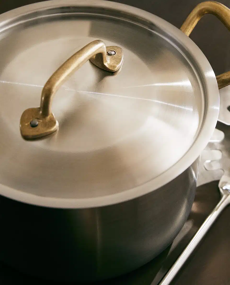 Además, sus asas de latón le dan un toque elegante y sofisticado. Compatible con todo tipo de cocinas, excepto lavavajillas, esta olla es la opción ideal para preparar tus platos favoritos con total comodidad. Precio: 99,99 €.