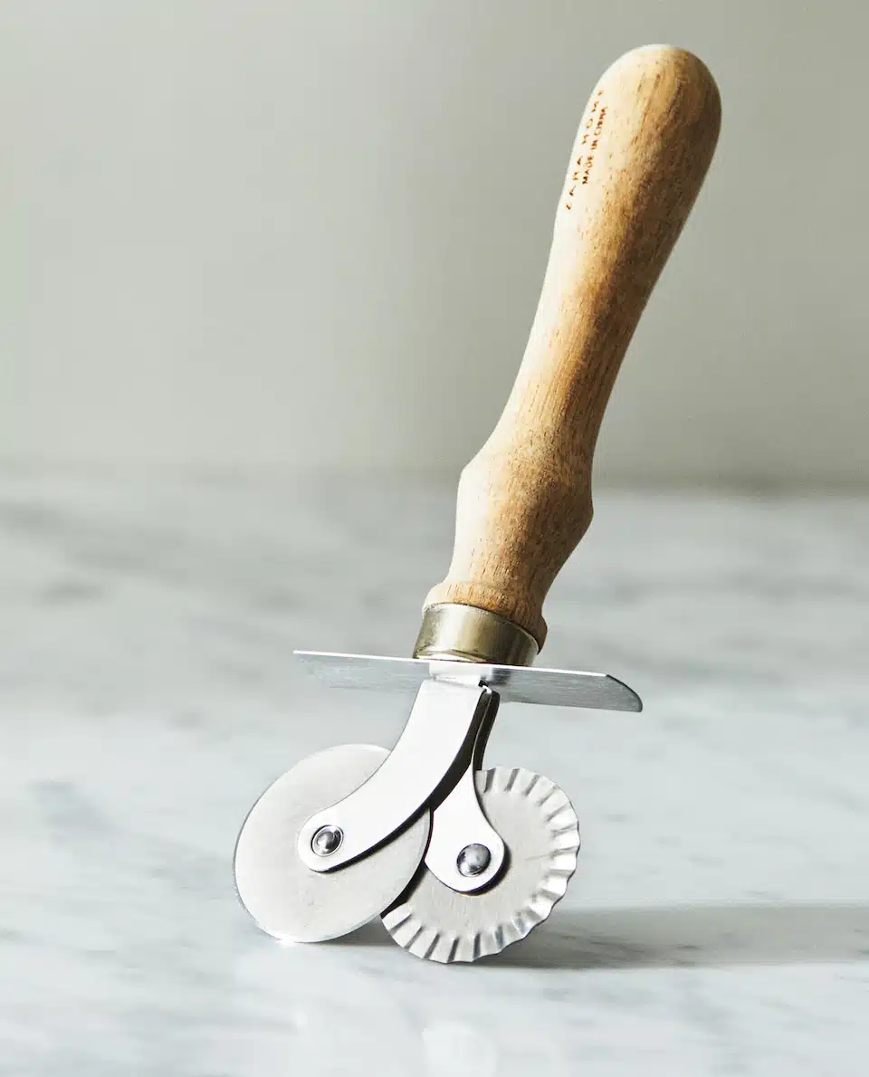 Este cortador de pasta fresca es una herramienta indispensable para aquellos amantes de la pasta casera. Fabricado en acero inoxidable y con un mango de madera de acacia, cuenta con dos cuchillas diferentes que permiten cortar la pasta de distintas formas y grosores. De esta forma, se pueden crear diferentes tipos de pasta como tagliatelle, spaghetti, fettuccine, entre otros.