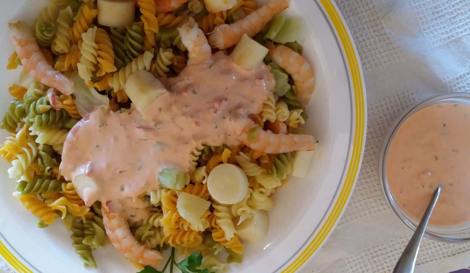 Algo que debes considerar es que el aguacate se oxida muy rápido, lo que quiere decir que se pone un poco parduzco, así que esta receta no se debe preparar con mucha antelación, porque se verá feo y mustio, pero eso no importa, porque los demás ingredientes los puedes tener listos y dispuestos en la nevera, hasta que llegue el momento de servir, que es cuando vas a pelar y a cortar el aguacate, lo que si debes tener preparada previamente es la salsa.