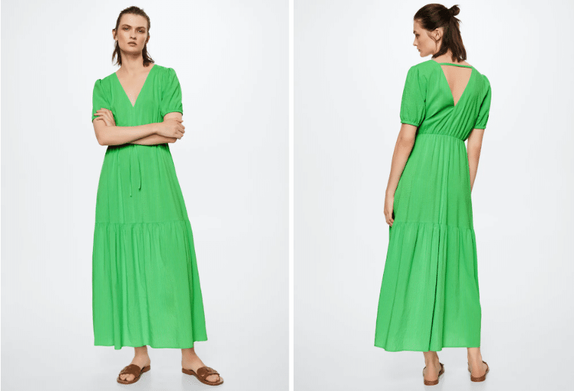4Vestido largo fluido en color verde de Mango