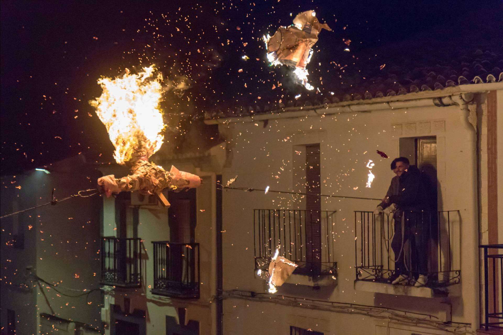 Las muñecas son expuestas durante el Sábado de Gloria, generalmente en la calle principal del pueblo, para valorar el gran trabajo que se ha seguido para ser confeccionadas. Una vez llegada la noche, se comienza a realizar la quema de las muñecas, mediante dos cuerdas que son descolgadas de dos balcones enfrentados y se atan en las anillas de cada muñeca. Después, dos personas tiran de las cuerdas para poner a la muñeca en el aire, donde se prende fuego y se procede a darle vueltas, hasta que se consume todo el papel y queda solamente la cruz.