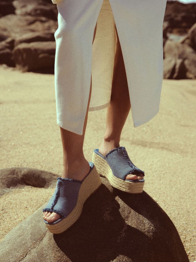 La marca de moda Parfois ha lanzado al mercado una nueva sandalia que combina tendencia y comodidad. Se trata de un zapato tipo sandalia confeccionado en tejido denim, con cuña y plataforma para dar una mayor estabilidad al caminar.