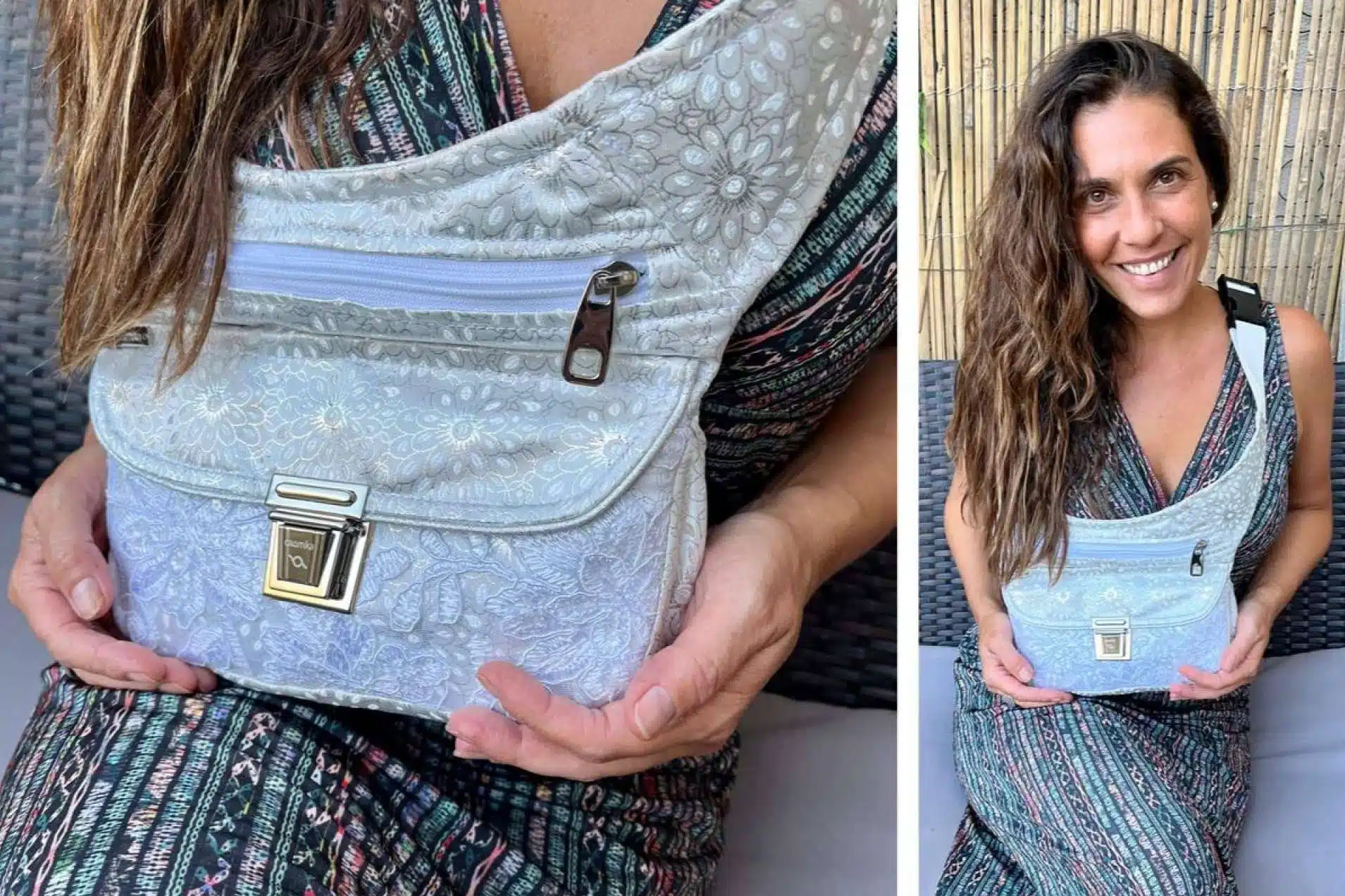 En los primeros años, ya tenía un producto estrella "los bolsos de cadera", ideales para el porteo. Los diseñé pensando en una forma y capacidad ideal para llevar un par de pañales, un biberón o botella de agua, el paquete de toallitas, las llaves, el móvil, etc., ideal para llevar todo lo indispensable atado a la cintura y tener las manos libres para tus hijos. Nada de bolsos incómodos en aquel momento vital tan especial.