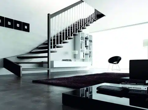 En este caso, primero se define la altura. Para las viviendas comunes se puede usar una escalera clásica con peldaños en tramos. Pero, en el caso de que sea una casa más grande con techos altos, se puede optar por un modelo caracol Akuna que, además de brindar elegancia, gestiona el espacio de la forma más adecuada.