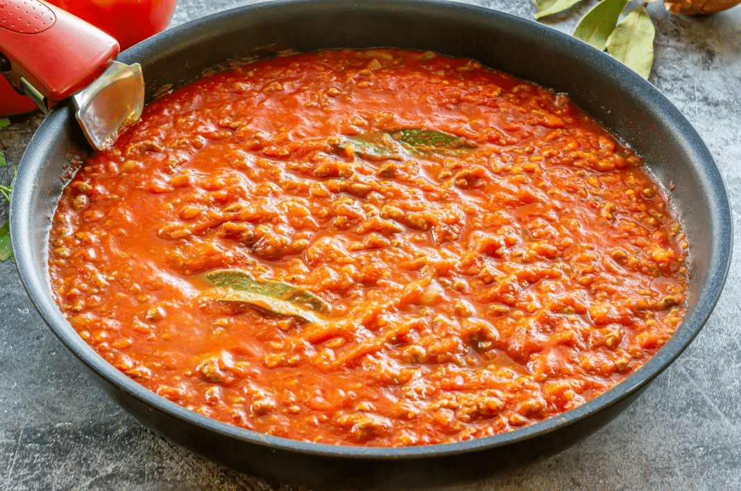 Una vez hayas sazonado la carne con las especies de tu preferencia y la mezcles con el sofrito, agrega la salsa de tomate casera como la prepara Karlos Arguiñano, mezcla la salsa con el resto de los ingredientes.