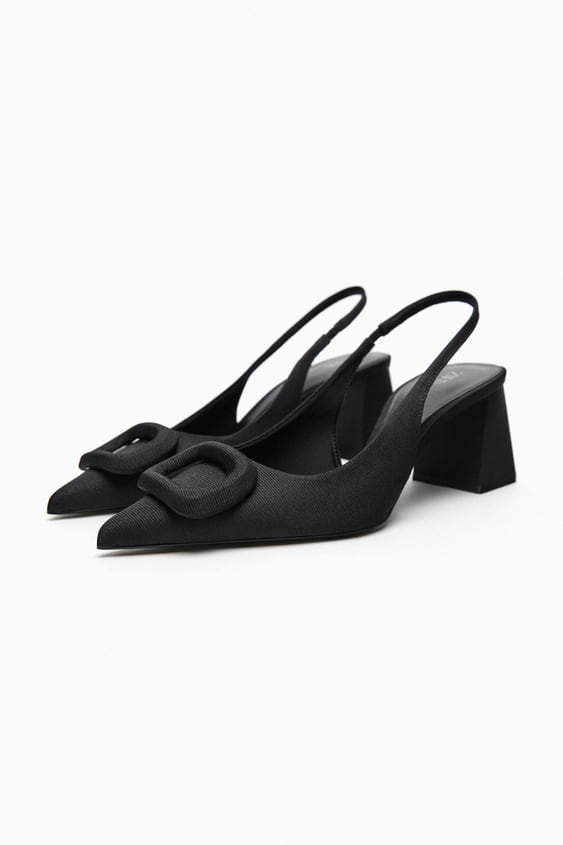 Estos zapatos de tacón destalonado tipo salón en tejido son una opción moderna y elegante para cualquier look. Con un detalle de adorno forrado en la parte delantera, estos zapatos tienen un toque sofisticado y femenino. Además, su acabado en punta y su tira trasera con pieza elástica los hacen cómodos y fáciles de usar. Estos zapatos están disponibles en 35,95 EUR.
