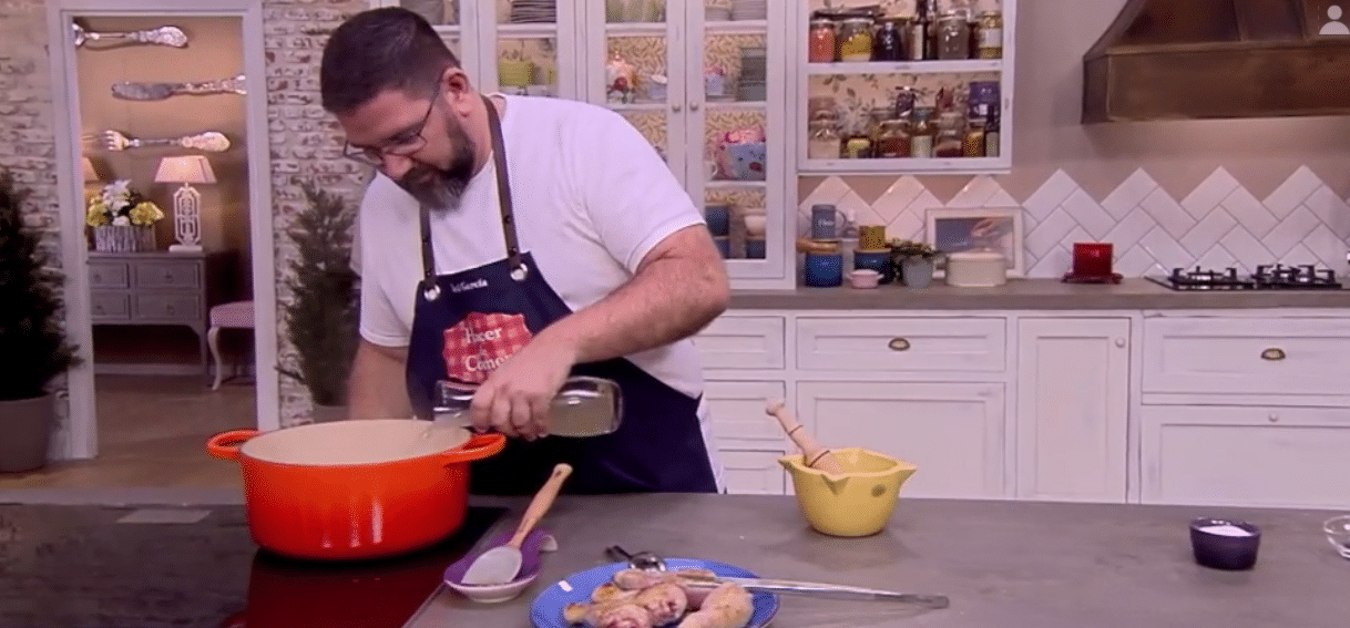 7Agrega el caldo de pollo y los muslos como lo hace Dani García