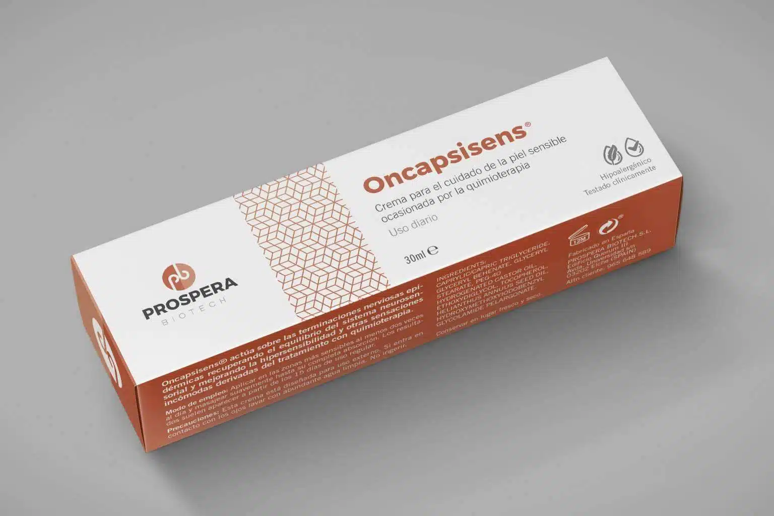 PROSPERA BIOTECH, spin-off de la Universidad Miguel Hernández (UMH) de Elche, ya realizó un estudio con su crema Oncapsisens en 4 hospitales nacionales. El estudio fue llevado a cabo con pacientes que padecían hipersensibilidad cutánea después de realizar quimioterapia.