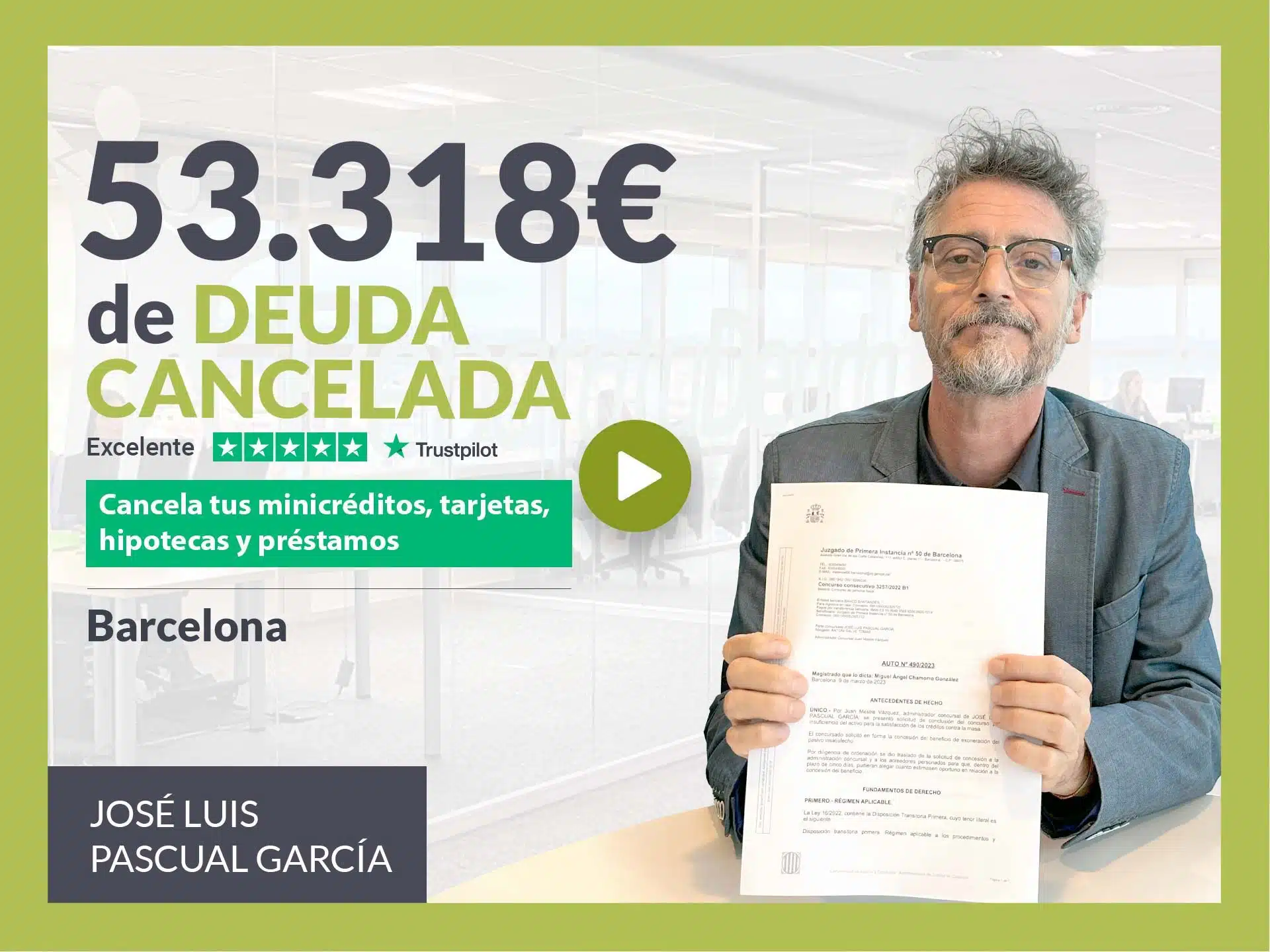 Repara tu Deuda Abogados, despacho de abogados líder en España en la tramitación de la Ley de Segunda Oportunidad, ha logrado otra cancelación de deuda en Barcelona (Cataluña). Mediante la gestión de Repara tu Deuda Abogados, el Juzgado de Primera Instancia nº50 de Barcelona (Catalunya) ha dictado el beneficio de exoneración del pasivo insatisfecho en el caso de José Luis Pascual García, que había acumulado una deuda de 53.318 euros a la que no podía hacer frente. VER SENTENCIA