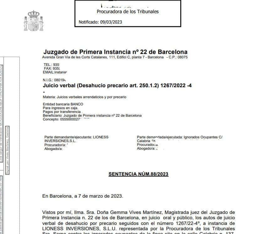 El Juzgado de Primera Instancia nº 22 de Barcelona ha condenado a uno de los ‘okupas’ que accedieron en junio de 2022 a un inmueble de la conocida como Casa Orsola, en una sentencia en la que se ordena el desalojo de la vivienda y el pago de las costas, al tiempo que se subraya la “mala fe” y “temeridad” del ocupante ilegal por reclamar un alquiler social a la propiedad.