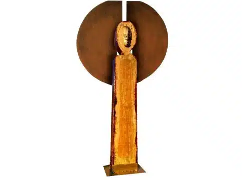 La propuesta artística de Pilar Almagro destaca por su fuerza expresiva. Sus esculturas reflejan la fascinación la cultura totémica, asentada en un sistema de creencias basado en la protección de las personas.