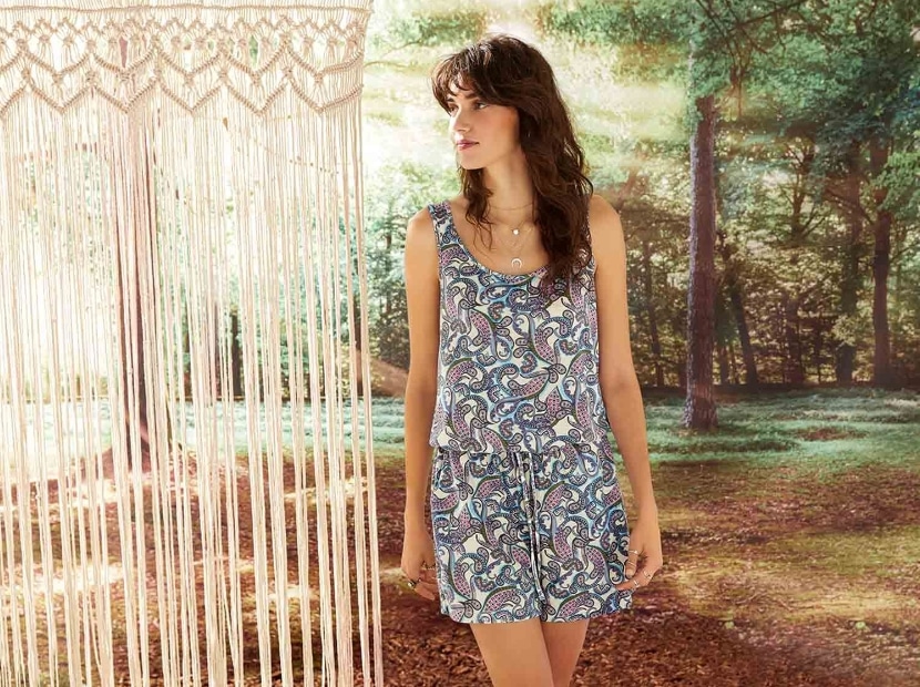 Este mono para mujer con estampado es perfecto para cualquier ocasión. Cuenta con un cuello redondo y está disponible en tallas S a L. El estampado le da un toque divertido y versátil, por lo que puedes usarlo tanto para eventos casuales como para ocasiones más formales.