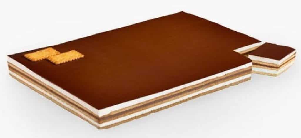 Cada 100 gramos de esta deliciosa tarta aportan 231 kcal, 7,4 gramos de grasa (de los cuales 4,5 gramos son grasas saturadas), 36 gramos de hidratos de carbono (14 gramos de los cuales provienen de azúcares), 1,3 gramos de fibra alimentaria, 4,1 gramos de proteínas y 0,21 gramos de sal. Con un precio de alrededor de 8,50 €, esta tarta es una opción irresistible para los amantes del chocolate y los postres fríos.