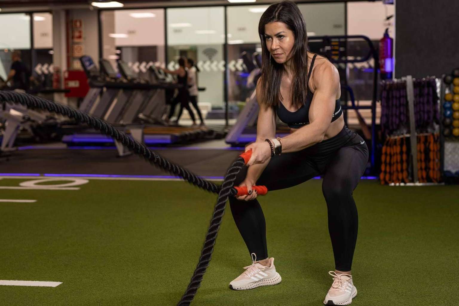 Al mismo tiempo, el centro deportivo en una de sus salas equipada con césped artificial posibilita ejecutar entrenamientos funcionales que garantizan el aceleramiento metabólico mediante tablas de equilibrio, pesas rusas, balones medicinales, bosu, etc.; y brinda actividades como Body Combat o Body Attack, inspiradas en disciplinas deportivas, además del running al aire libre.
