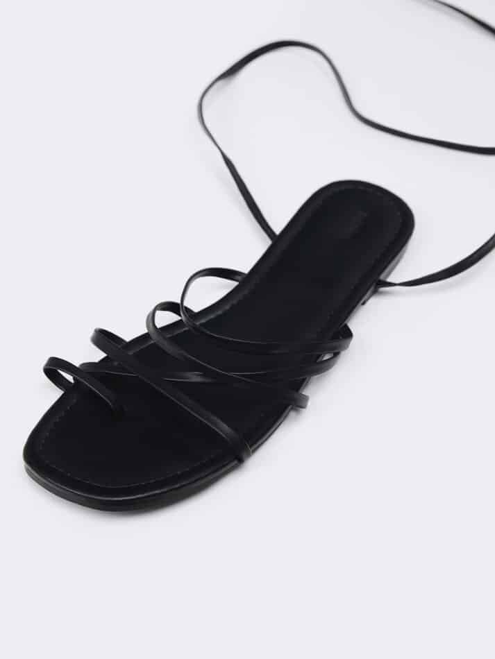 La sandalia plana atada de Lefties es una excelente opción para aquellos que buscan un zapato de estilo elegante y veraniego sin comprometer la comodidad. Con su diseño sofisticado y su cierre de tiras atadas al tobillo, esta sandalia es una adición imprescindible para cualquier colección de zapatos de verano.