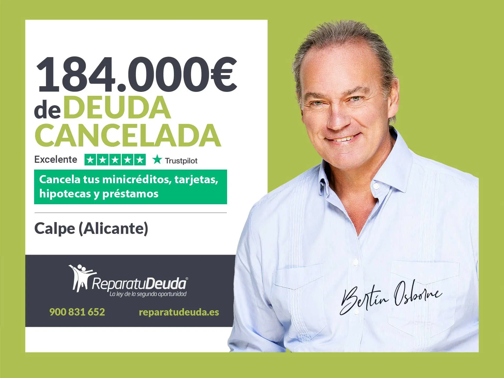 Repara tu Deuda, despacho de abogados líder en España en la Ley de Segunda Oportunidad, ha logrado cancelar una deuda en la Comunidad Valenciana. Se trata del caso de un vecino de Calpe (Alicante) que ha quedado exonerado de un importe de 184.000 euros, aplicando la Ley de Segunda Oportunidad. VER SENTENCIA