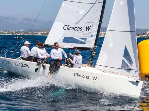 Foto: © Laura G. Guerra. El J70 “Clínicas W Sailing Team” superando la boya de barlovento en primera posición en la pasada Spring Mediterranean Cup de J70.