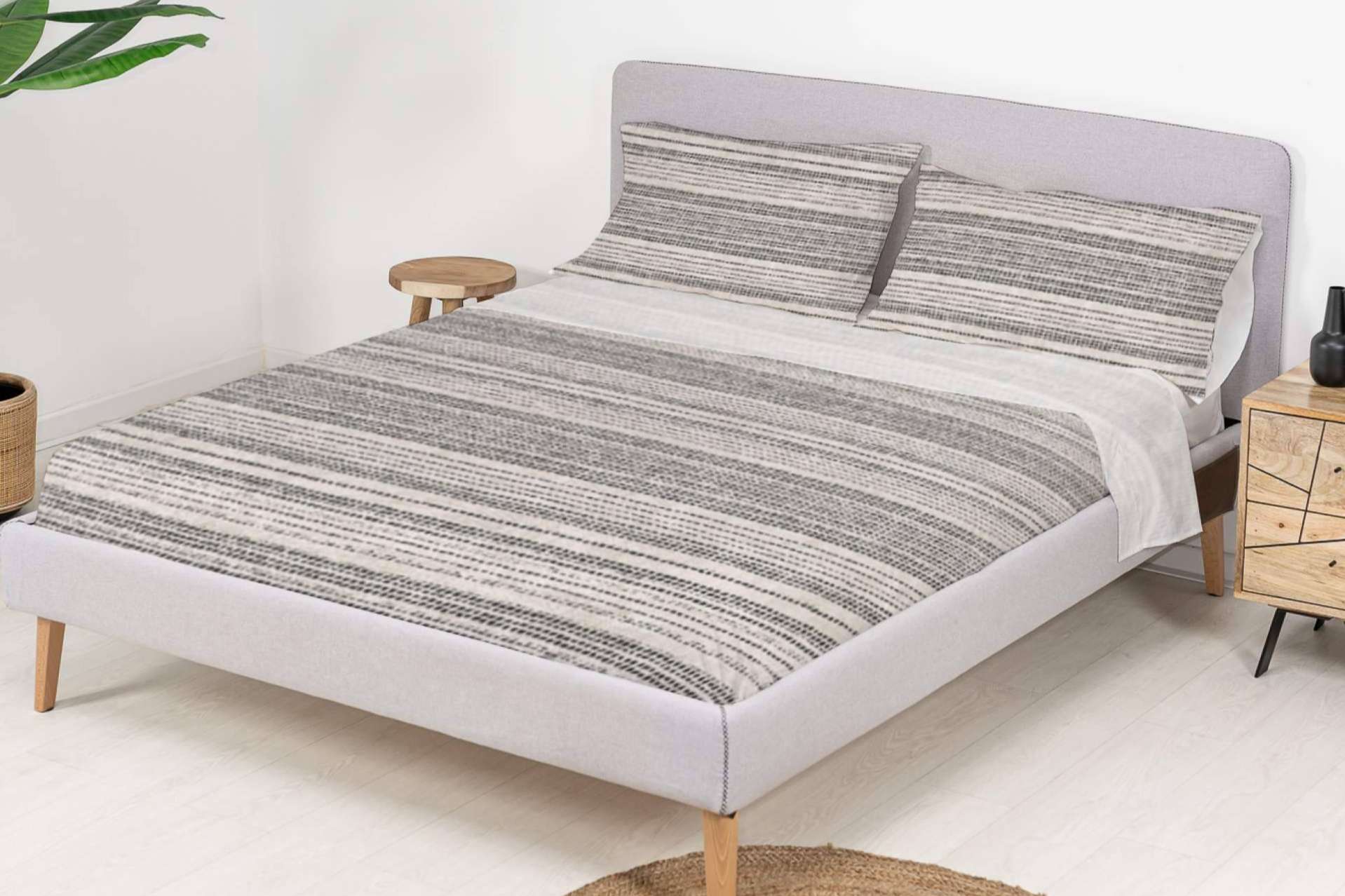 Todos estos juegos de cama se confeccionan íntegramente en territorio español con tejido compuesto 50 % algodón y un 50 % poliéster, lo que garantiza un tacto agradable a la piel y, al ser transpirables, son ideales para épocas como el verano. Al mismo tiempo, no requieren de un planchado intenso.