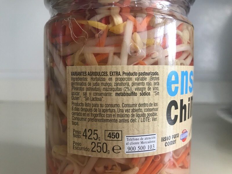 Respecto a la salsa, la ensalada china de Hacendado podría venir con un paquete de salsa agridulce, que generalmente se mezcla con los ingredientes de la ensalada antes de servir. Es importante leer la etiqueta del producto para conocer los ingredientes y valores nutricionales específicos de la ensalada china de Hacendado que se esté considerando comprar y si ve que trae mucha azúcar, siempre la puedes pasar por agua primero, antes de servirla.