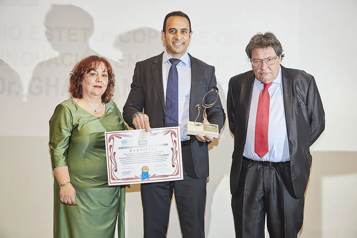 El pasado 19 de mayo, se premió al Dr. Ghassan Elgeadi con el Premio Estetoscopio de Oro a la Innovación en la medicina. El Prof. Dr. Elgeadi posee más de quince años de experiencia profesional tanto en el ámbito nacional como internacional, en países como Alemania, Emiratos Árabes Unidos, Egipto, Jordania, EEUU.