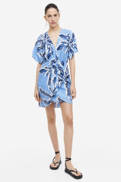 7Vestido con escote de pico de H&M Azul claro/Estampado de Palmeras