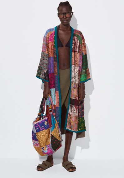 El kimono patchwork seda es una prenda versátil que se puede combinar de diversas formas. Puedes usarlo sobre un vestido ajustado para añadir un toque de elegancia, o combinarlo con unos pantalones y una blusa para un look más casual pero sofisticado. También puedes usarlo como una capa adicional sobre un traje de baño o como una prenda ligera y estilizada para cubrirte durante las estaciones más cálidas. A continuación, te mostrare el otro modelo que ofrece Parfois.