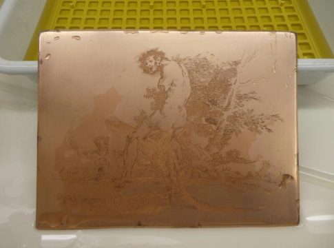 Previo al tratamiento de desacerado, se realiza una eliminación de elementos depositados en las superficies como barnices protectores, Paraloid y tintas antiguas cristalizadas. Una vez eliminadas las capas electrolíticas se realiza un tratamiento de inhibición del cobre y la protección de las planchas con un barniz reversible y estable.