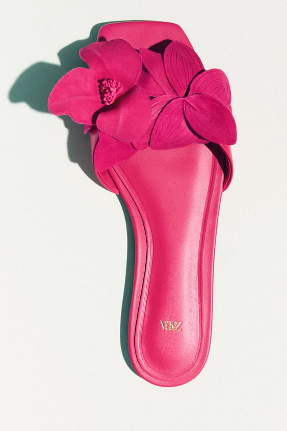 3Sandalia plana piel flor de la colección Zara