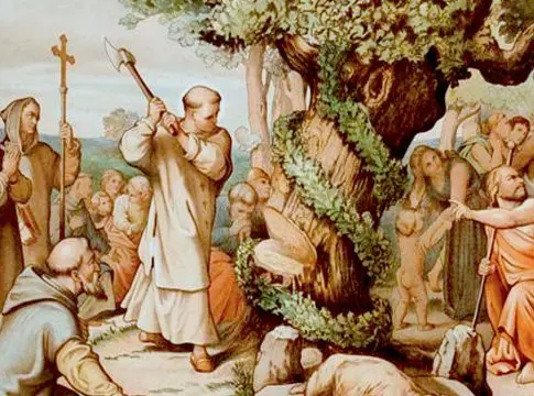 Un momento clave en la vida de San Bonifacio fue su famoso encuentro con el roble de Geismar. Según la leyenda, en este lugar sagrado, los germanos adoraban a su deidad pagana, Thor. San Bonifacio, con determinación y fe en Dios, se enfrentó al roble y lo derribó con un solo golpe de hacha. Este acto simbólico fue interpretado como una demostración del poder y la superioridad del Dios cristiano sobre las deidades paganas. Este evento tuvo un impacto significativo en la conversión de muchos germánicos al cristianismo.
