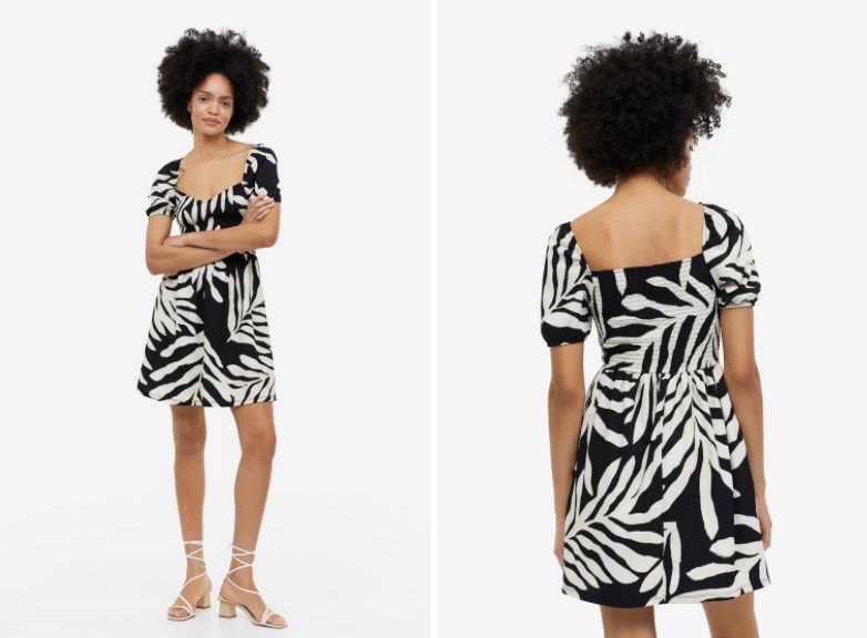 Otro de los modelos que enloquece a las chicas que van a H&M por el vestido perfecto para el verano es este, el cual, confeccionado en punto texturizado, combina un bonito y delicado escote corazón con mangas cortas y abullonadas, mientras que queda entallado en el torso, lo que le permite marcar la figura. Su falda ancha y con vuelo, te permite sentirte siempre cómoda, delicada y femenina.