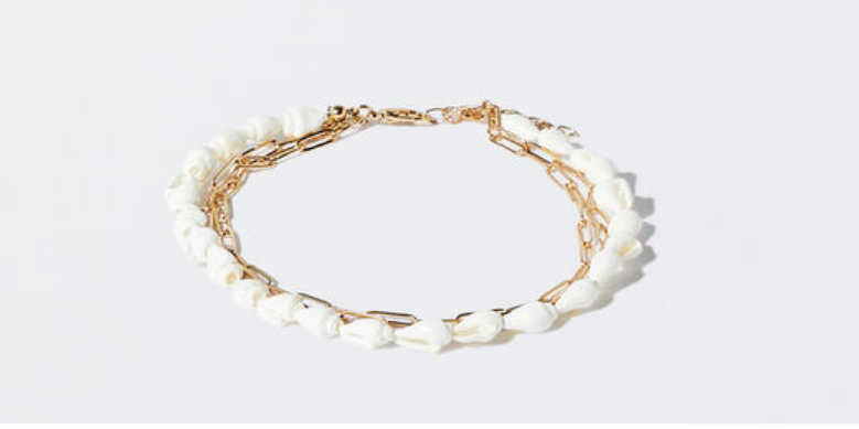 Continuando en la línea de las chicas a las que les gusta lucir delicadas y con un encanto muy sutil, traemos para ti esta tobillera de Parfois que combina hierro y conchas, pero no cualquier tipo de conchas, sino las más delicadas que te puedas imaginar en color blanco.