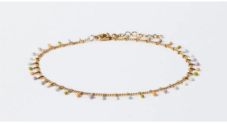 Confeccionada en 80% acero inoxidable y 20% esmalte, esta tobillera será tu preferida si disfrutas los múltiples colores pero en tonos discretos. La llevas por 17,99 €.