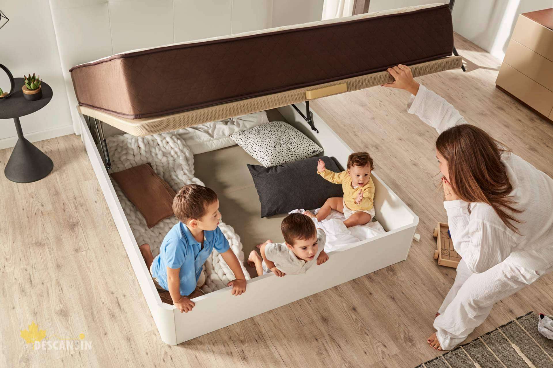 Otra de las ventajas de este pack es que el canapé permite guardar sábanas, mantas, y otros enseres, organizándolo todo de manera más efectiva. Esto se traduce en una mayor capacidad de almacenamiento y armarios más despejados.