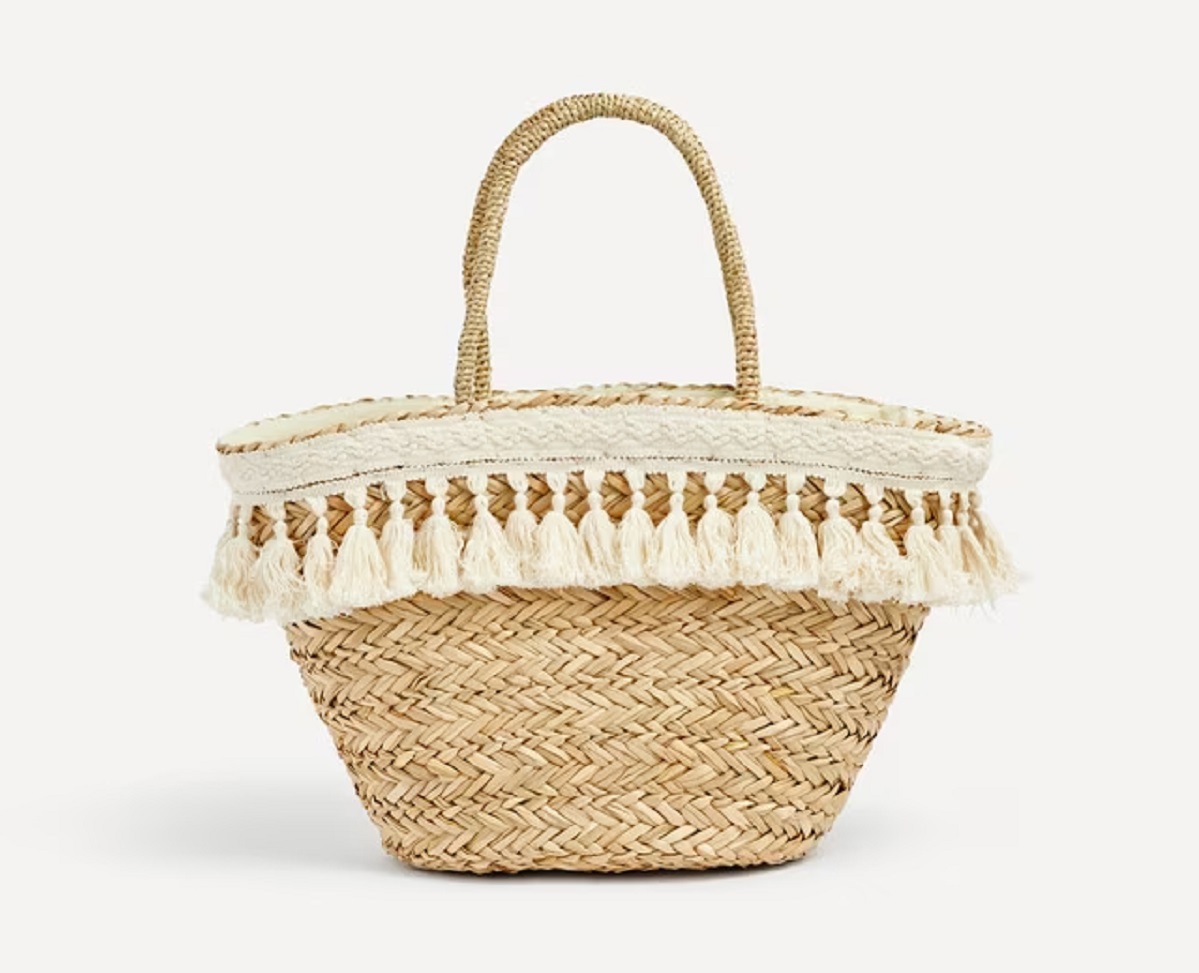 Se trata de un bolso de playa con forma rectangular y fabricado en yute, por lo que es 100% de fibra vegetal ecológica. El diseño tiene doble asa corta y detalle de borlas de colores, un bolso muy en tendencia esta temporada. Si quieres hacerte con este, aquí es donde vas a poder encontrarlo.