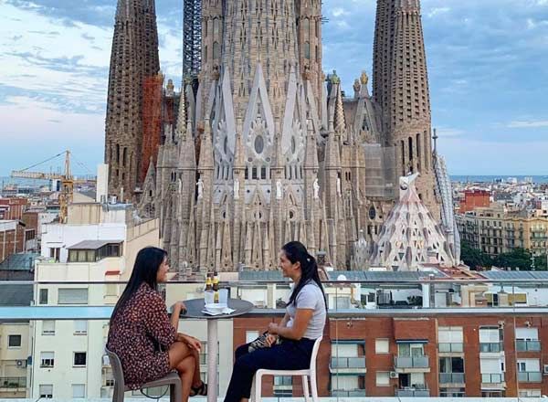 Esta terraza es ideal para los amantes de la historia, porque desde allí puedes disfrutar de la extraordinaria obra de Gaudi, la Sagrada Familia porque se encuentra ubicada justo en frente, además te ofrece una vista panorámica de la ciudad, es uno de esos sitios de obligatoria visita cuando vienes Barcelona porque es otra forma de disfrutar de la Sagrada Familia, es súper acogedor y dependiendo de la hora del día que decidas visitarle más acogedora la encontraras.