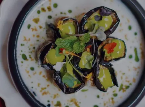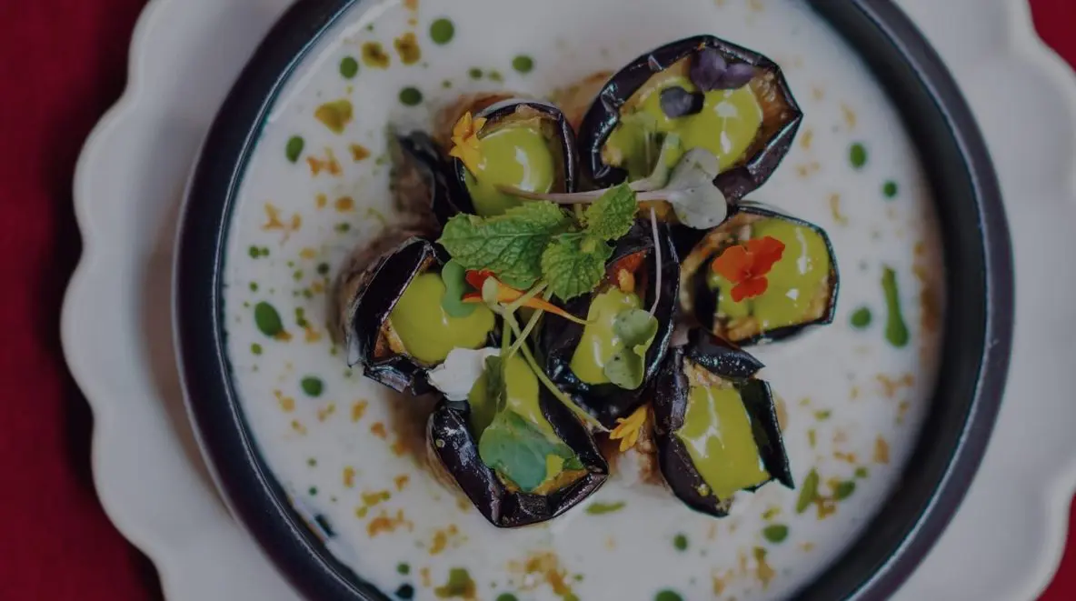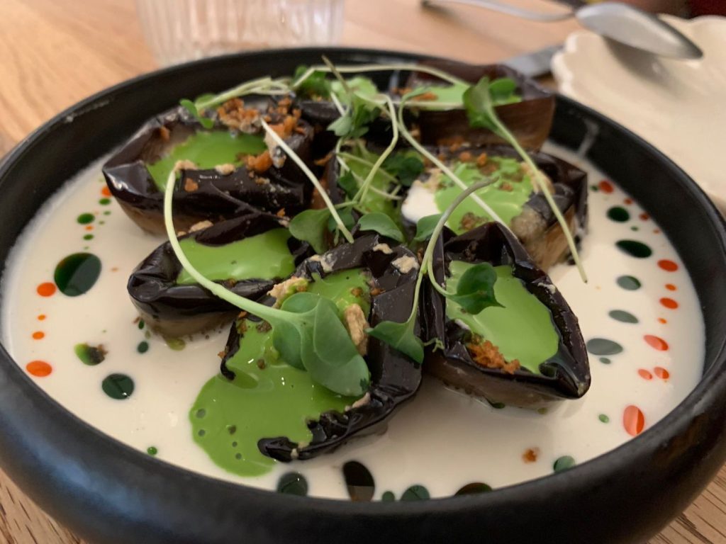 Así pues, nuestra experiencia ha comenzado con uno de los platos georgianos más tradicionales: el badrijani nigvzit, consistente en láminas de berenjena rellenas de pasta de nueces en salsa de leche de coco y almendras (sí, apto para veganos). Un sabor fresco que, sin duda, es de lo más sorprendente, y que este verano hará las delicias de sus degustadores.