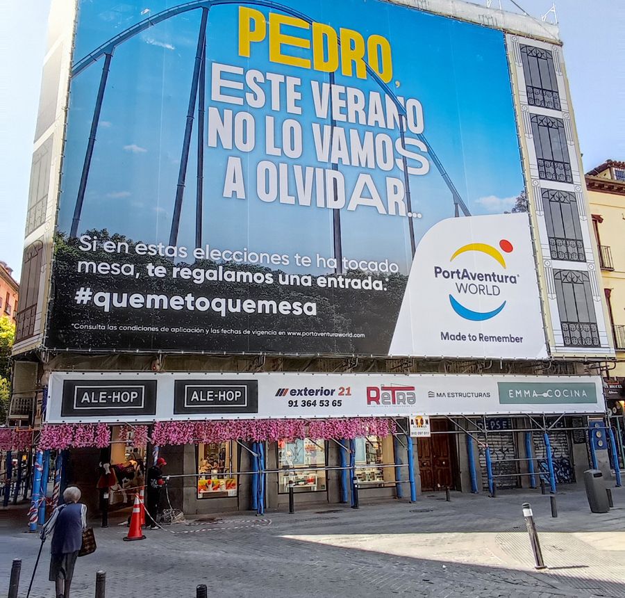 Esta campaña, lanzada bajo el ‘claim’ #quemetoquemesa por el parque de atracciones, uno de los máximos referentes de ocio en Europa, se ha presentado con una lona gigante en la plaza de San Miguel de Madrid.