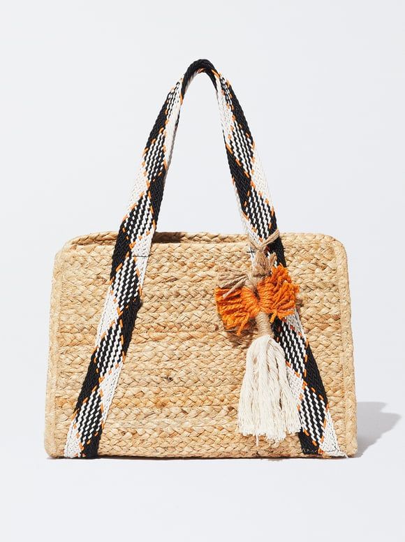 En esta oportunidad Parfois nos sorprende con un bolso estilo shopper elaborado con material de yute, viene con asas de mano trenzadas y por si fuera poco, tiene detalles en el colgante. El bolso viene con un material interior que es extraíble elaborado con algodón y cierre de cremallera. En general el material seleccionado para elaboración de este bolso es yute en un 80 % y poliéster en un 20 %, se encuentra disponible en color beige y lo puedes llevar a casa por tan solo 25,99 euros.