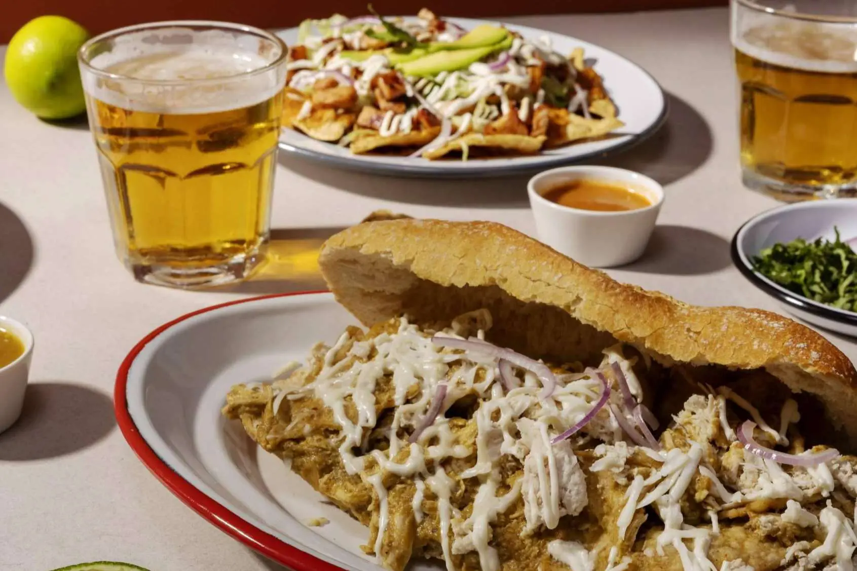Además de las preparaciones especiales que pronto se lanzarán al mercado, esta empresa cuenta con una amplia variedad de chilaquiles en su carta. Para los amantes de la carne, hay versiones con pollo, ternera, cochinita pibil o pollo empanado. Los chilaquiles rotos vienen con huevo frito y picadillo de chorizo. En todos los casos, los totopos de maíz se bañan con una salsa a elección y se acompañan con queso latino, nata agria, lechuga y cebolla.