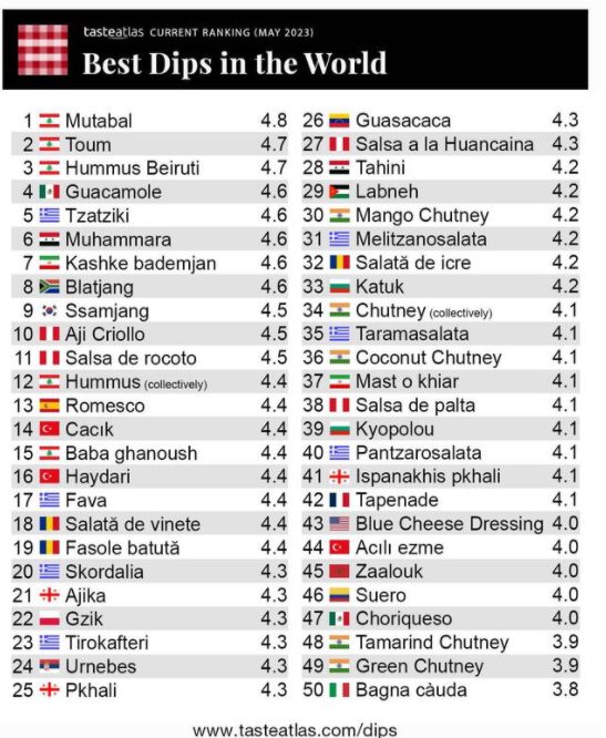 La guasacaca compitió con más de 3.000 aderezos y salsas para lograr ubicarse en el top 50 de TasteAtlas. El lugar de la receta venezolana fue el puesto número 26, lo que la deja como una de las más apreciadas con un puntaje de 4,3. Aprovecha y prepara esta salsa en casa y disfrútala con una rica carne a la parrilla ahora que el verano ha llegado y es momento de preparar delicias a la barbacoa.