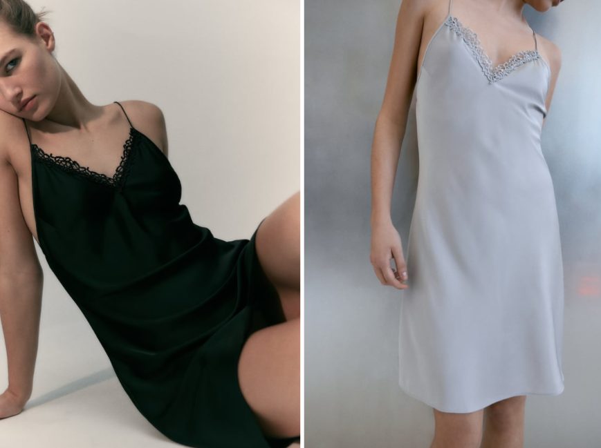Lo puedes conseguir en dos tonos diferentes, en el más clásico y seductor color negro, y también en gris claro. En ambos modelos el vestido lencero cuenta con delicado detalle de guipur a tono. Su éxito ha sido tal que en color negro solo se encuentra disponible en talla M y en color gris en talla L. Su precio de rebaja lo ha dejado de 25,95 en tan solo 19,99 euros. Como ves, en Zara conseguirás una gran variedad de lencería, y hay para todos los gustos, así que da un vistazo a su página web y escoge la que más se adapte a tus gustos.