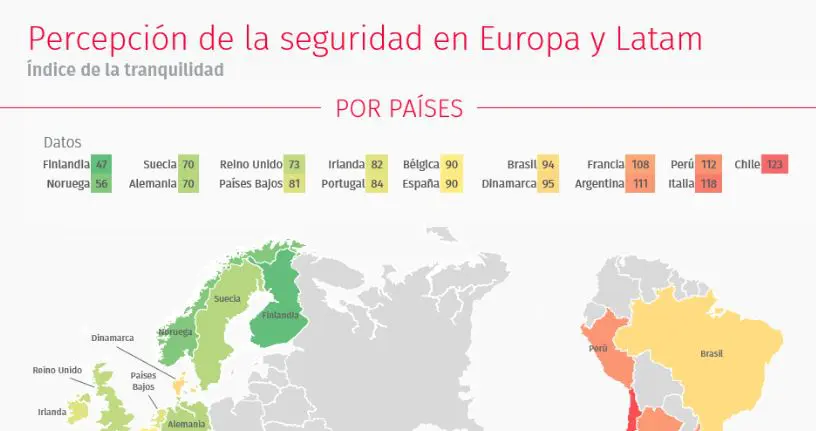 Así, desde una perspectiva global, los países de Latam muestran mayor preocupación por la seguridad que los de Europa. Además, ambas regiones coinciden en que el robo en el hogar es la principal preocupación. En Europa los robos en el hogar preocupan casi el doble que los que suceden en el exterior de la vivienda, por el contrario, en Latam, la preocupación por el robo fuera del hogar supera en un 4% de media al que puede ocurrir dentro de la vivienda.