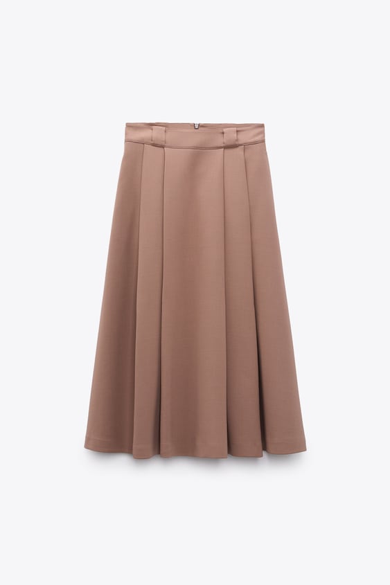 La falda midi volumen de Zara es una prenda elegante y femenina que no puede faltar en tu guardarropa de verano. Confeccionada en un hermoso tono rosa claro, esta falda de tiro alto presenta una cintura con trabillas y detalles de pliegues que le brindan un toque de estilo único y sofisticado. El bajo con volumen le da un movimiento y una elegancia extra a la prenda, mientras que el cierre con cremallera oculta en costura garantiza un ajuste perfecto.
