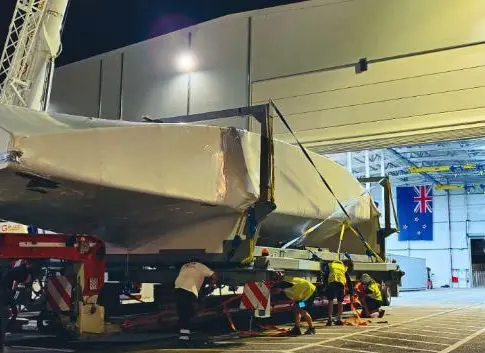 El monocasco AC75 de Emirates Team New Zealand ‘Te Rehutai’ ya se encuentra en tierras catalanas. Después de una travesía de tres semanas y media a bordo del buque ‘Ice Glacier’ y de su posterior desembarco en la madrugada del lunes en el Port de Tarragona, el barco ganador de la 36ª edición de la America’s Cup fue transportado horas después por carretera hacia la base barcelonesa del equipo defensor del trofeo más antiguo del planeta.