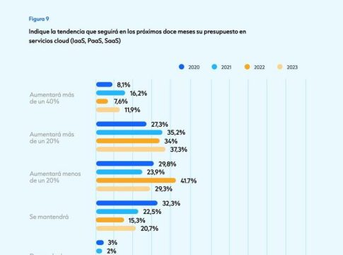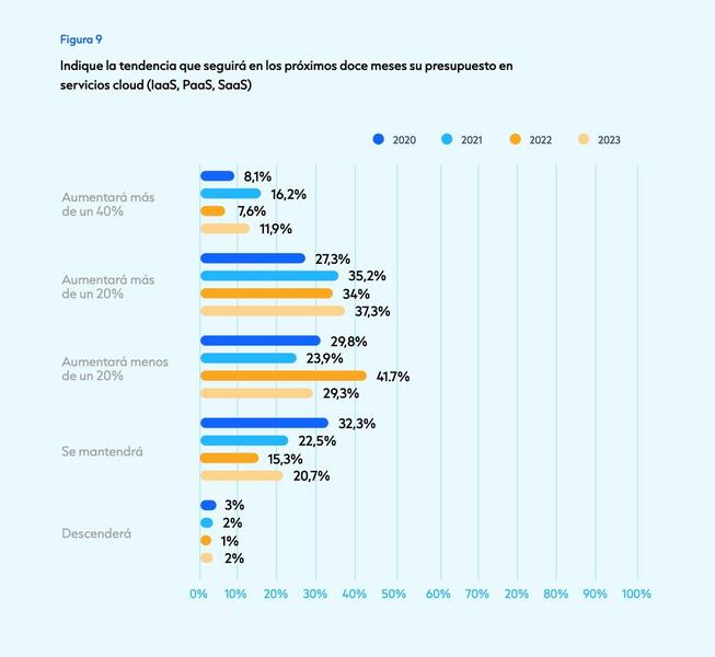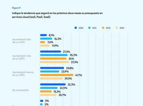 En ese sentido, el estudio señala que el 50% de las grandes firmas en el país invierte alrededor de 1,2 millones anuales en la nube, una tecnología que consolida su crecimiento dentro de los presupuestos de tecnologías de la información (TI) de las compañías impulsada, además de por la IA Generativa, por el 'marchine learning' y el 'deep learning'.