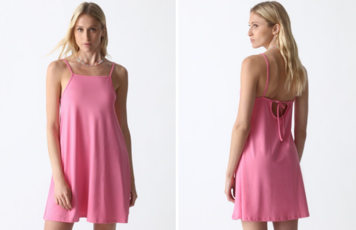 Este vestido tiene un delicado detalle en la espalda gracias a que sus finos tirantes cierran con lazada en la parte de atrás; además, lo que garantiza el máximo confort, comodidad y feminidad. Lo consigues disponible desde la talla XS hasta la XL y su precio de 4,99 euros, lo hace irresistible.